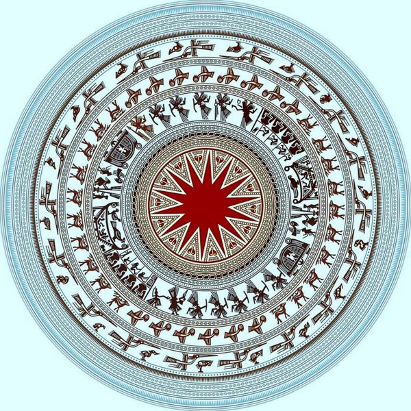 Hình ngôi sao mặt trời được chạm khắc phổ biến trên mặt trống đồng, trên nắp thạp đồng. Những hình người và động vật (hươu nai, chim chóc...) trên mặt các trống Ngọc Lũ, Hoàng Hạ, Sông Đà...đều đi, nhảy, chạy, bay chung quanh hình mặt trời, ngược chiều kim đồng hồ. Trống nào cũng vậy, rõ ràng không phải là ngẫu nhiên. Hình ảnh mặt trời đã để lại dấu ấn sâu sắc trong cuộc sống của người Việt cổ trồng lúa nước đến mức họ đã luôn khắc họa nó ở vị trí trung tâm của trống đồng, văn vật tiêu biểu của nền văn minh Việt cổ.